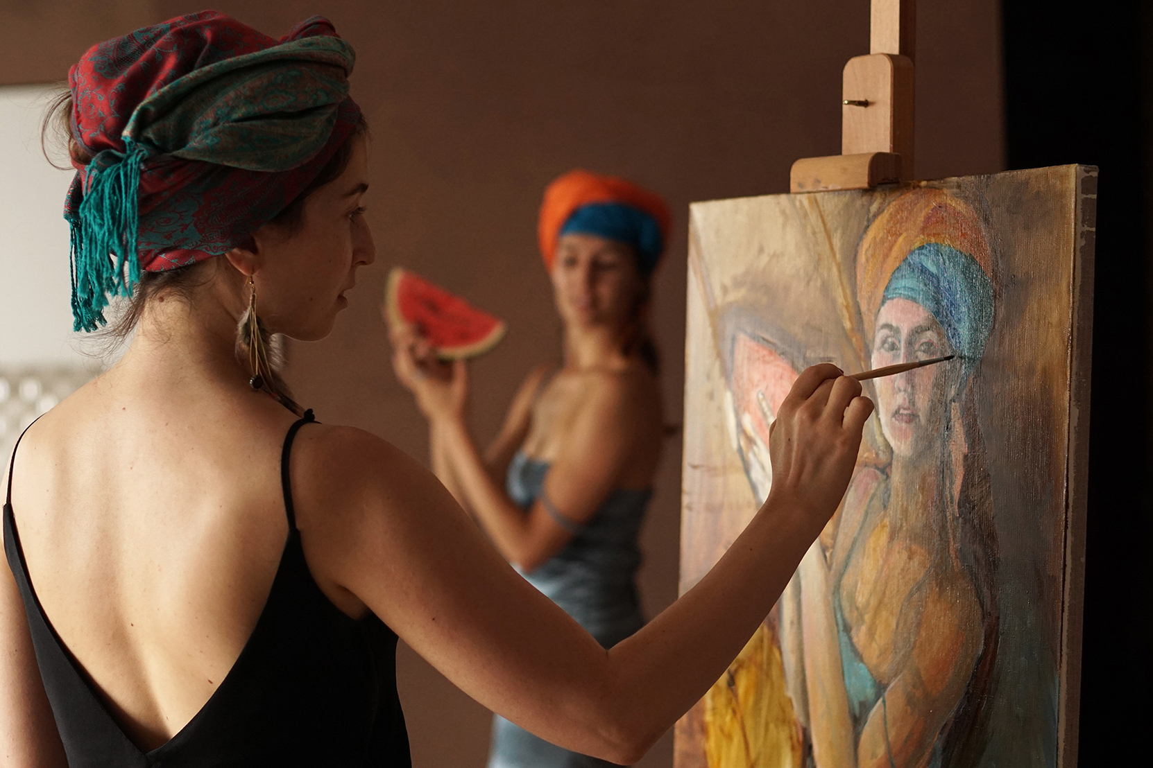 | Тамара Кхати Мои глаза мой дар. Открывая глаза я каждый день наслаждаюсь красотой. В плавных линиях обнаженного тела, ярких пятнах шумного города, в тишине безлюдных парков. Я вкладываю в свои работы любовь к природе, восхищение красотой, изучение человеческой души и человека в современном мире. Мне интересна тема взаимоотношений людей моего времени, их страхи и желания, мечты и разочарования, мне интересен человек, как часть природы. Я предпочитаю масляные краски, так как уделяю большое внимание цвету, а масло, как никакое другое средство передает цвет, придает картине сочность и глубину. Реже я использую в своих работах акрил. Масляные краски не только надолго сохраняют яркость, но и дарят произведению долгую жизнь. |